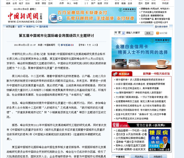 据悉,峰会将发布2011年中国城市化发展战略研究工程的研究成果,同时首次发布《中国城市化质量评估体系》(城市化质量白皮书征求意见稿暨中国城市化质量评估体系研究的思考)和《中国城乡统筹规划的实践探索》(住建部软件课题研究成果)。